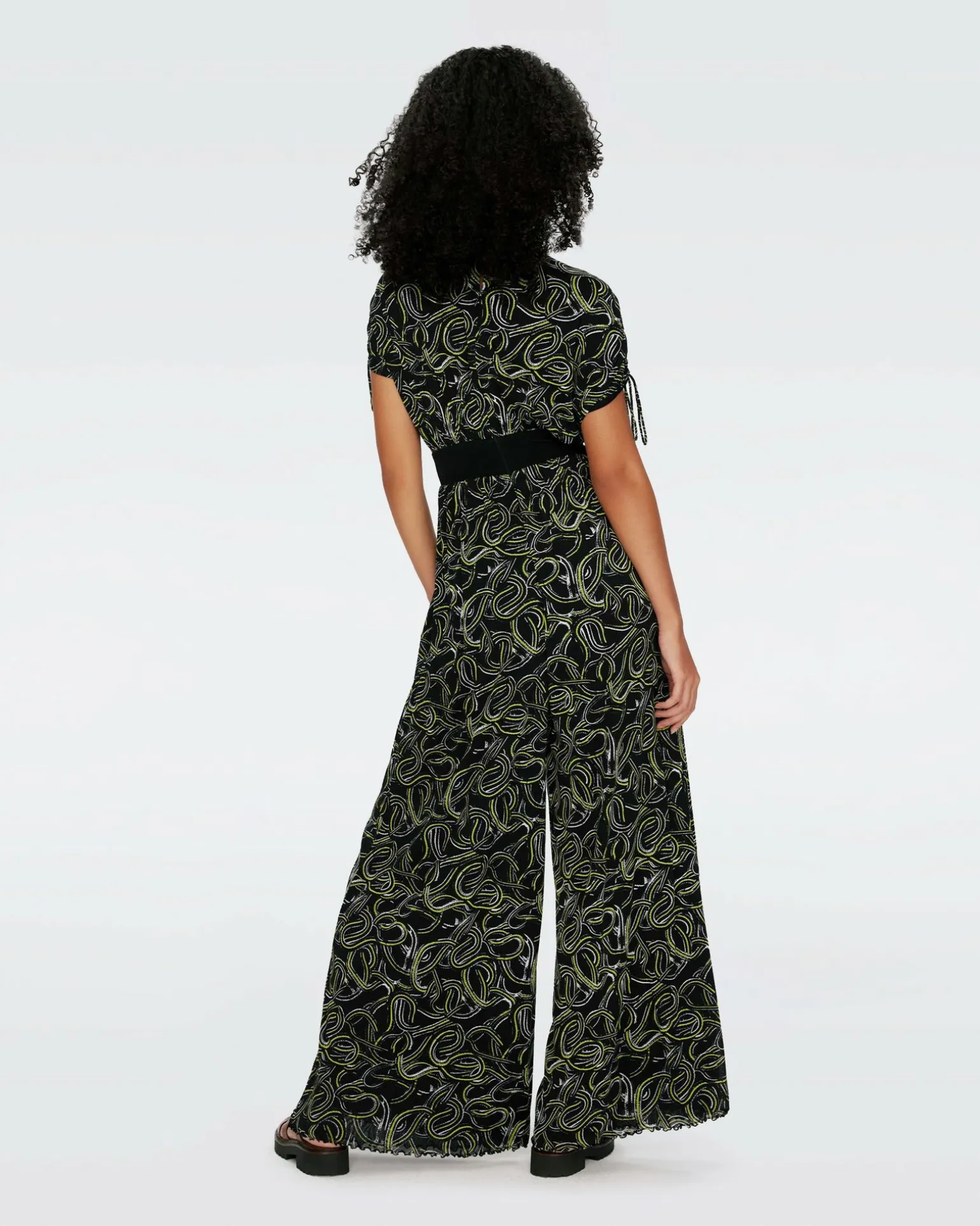 Flowy Yet Fitted, The Andra Jumpsuit Is Cut From A Stretchy And Comfortable Mesh. This Piece Has A High Scoop Neckline, Short Capped Sleeves With Drawstring Detail, And A Flattering, Contrasting Waistband. Loose-Fitting Legs Give This Jumpsuit A Comfortable, Breezy Fit.