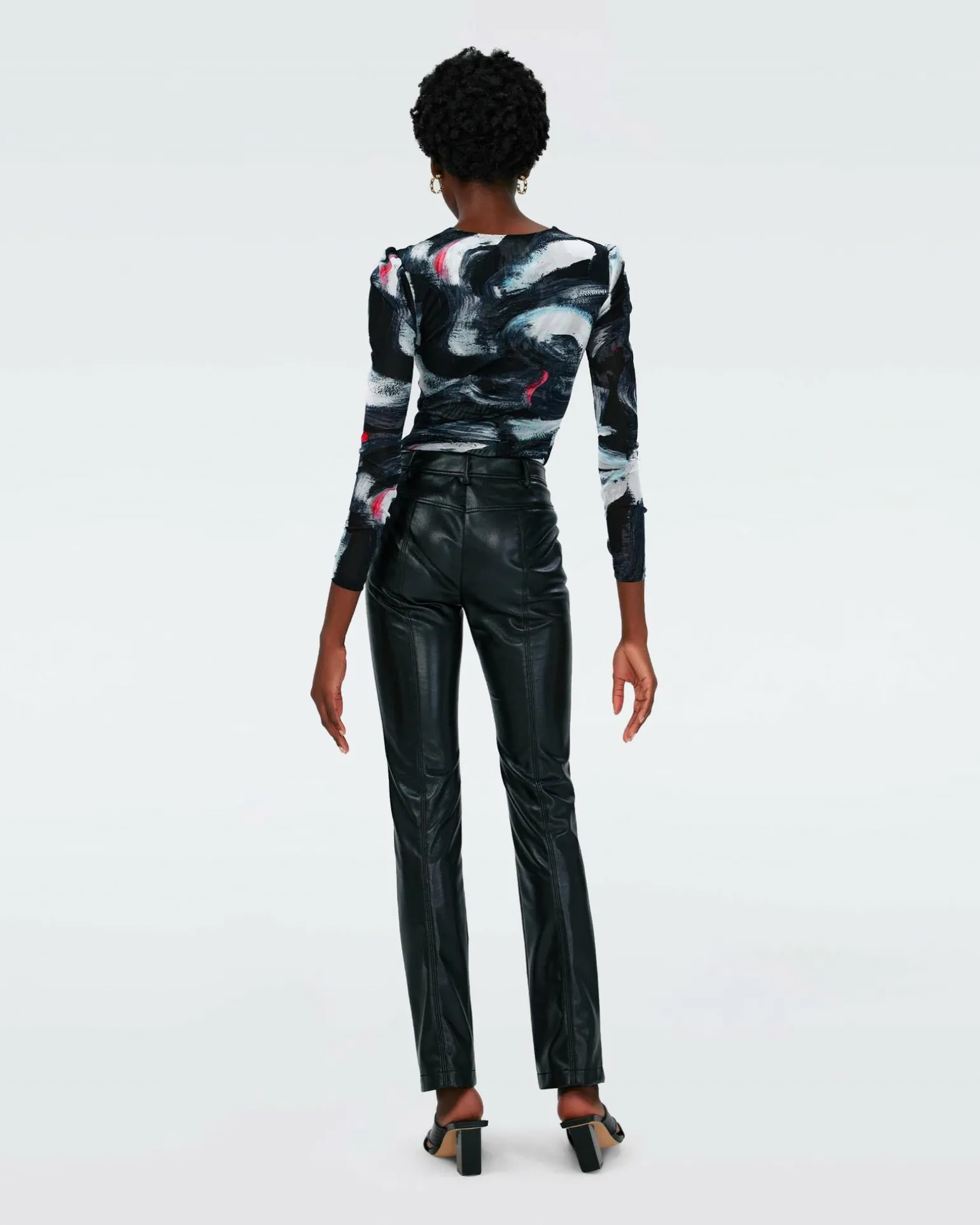 Dramatic Yet Subtle, The Costanza Bodysuit Is Cut From A Comfortable Mesh With A Close Fit. This Piece Has Long, Sheer Sleeves, A V-Neckline, And Wrap-Style Layering At The Waist.