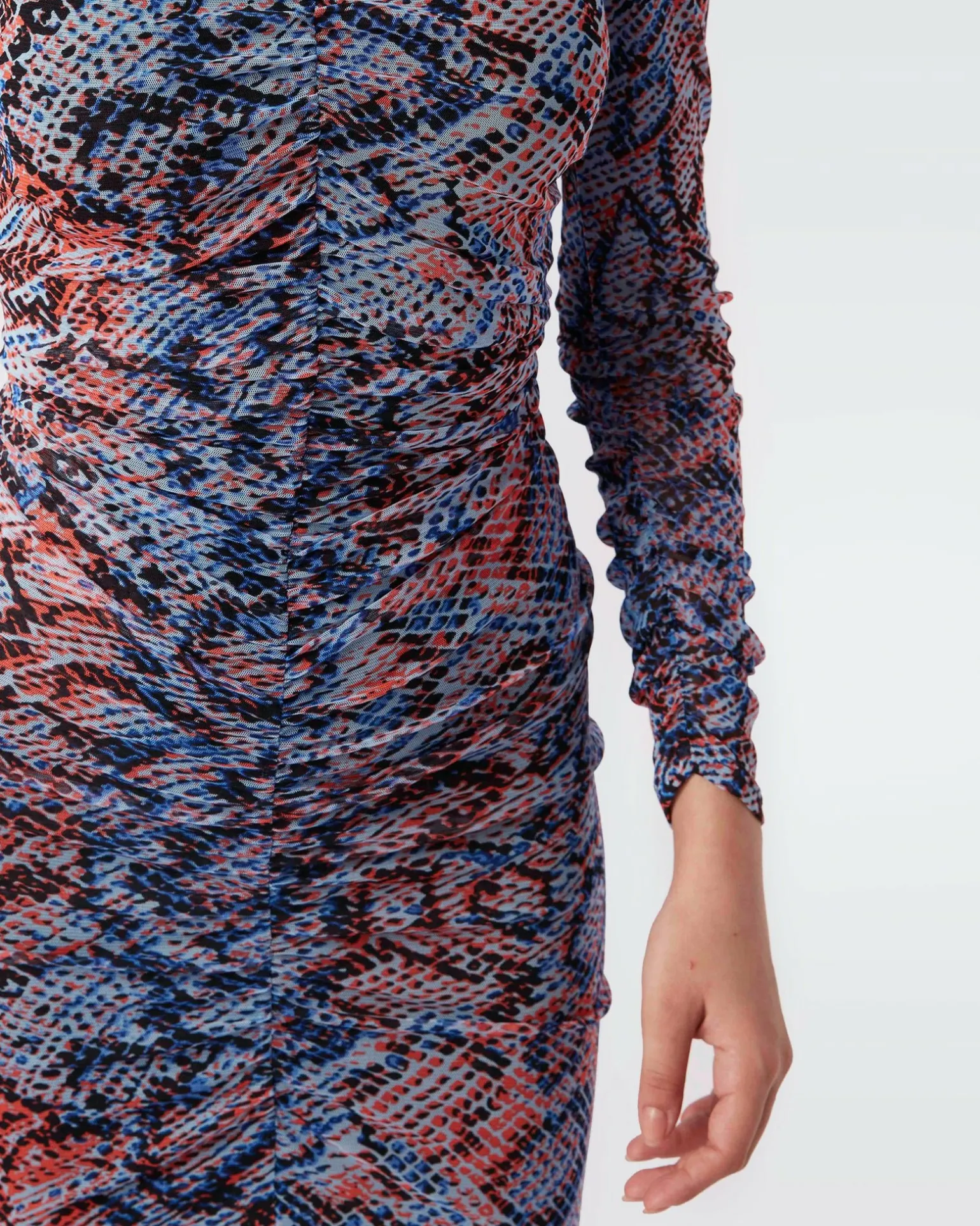 A Little Dress With Some Delicate Yet Flirty Updates, The Gypsy Is Our New Go-To Styling Staple. It Is Cut From A Form-Fitting Mesh And Is Outfitted With A Ballerina-Inspired Neckline, Ruching Along The Center, And A Playful Lettuce Hem. Landing Just At Or Above The Knee, This Piece Has Sheer Full Sleeves And A Bodycon Fit.