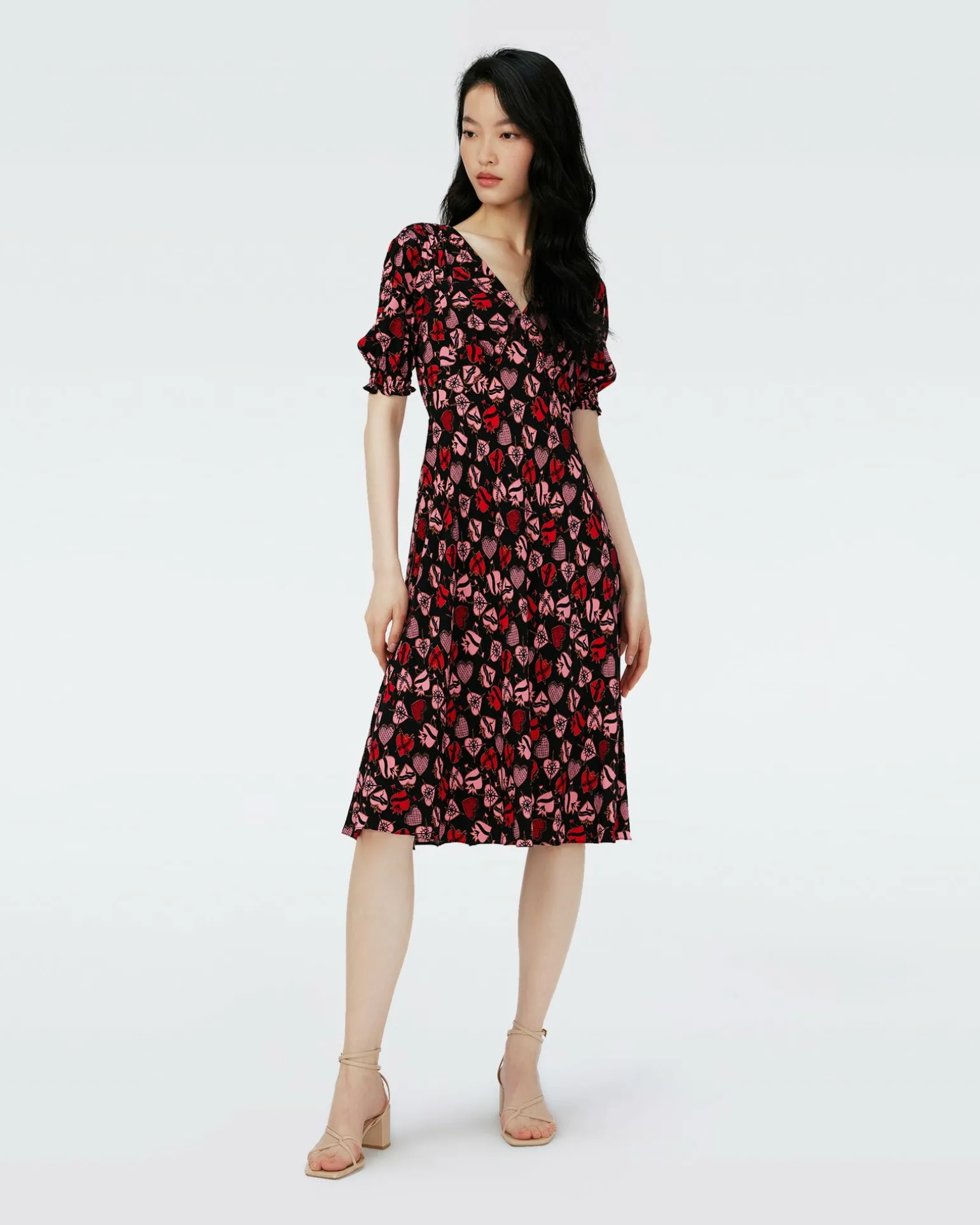 Cut From A Soft, Breathable Crepe The Jemma Dress Falls In A Romantic, Airy Drape. This Piece Has A V-Neckline, Puffed, Short Sleeves With Comfortable Smocking, And An A-Line Fit. With A Hidden Back Zip, It’S An Effortless Piece For Warmer Weather.