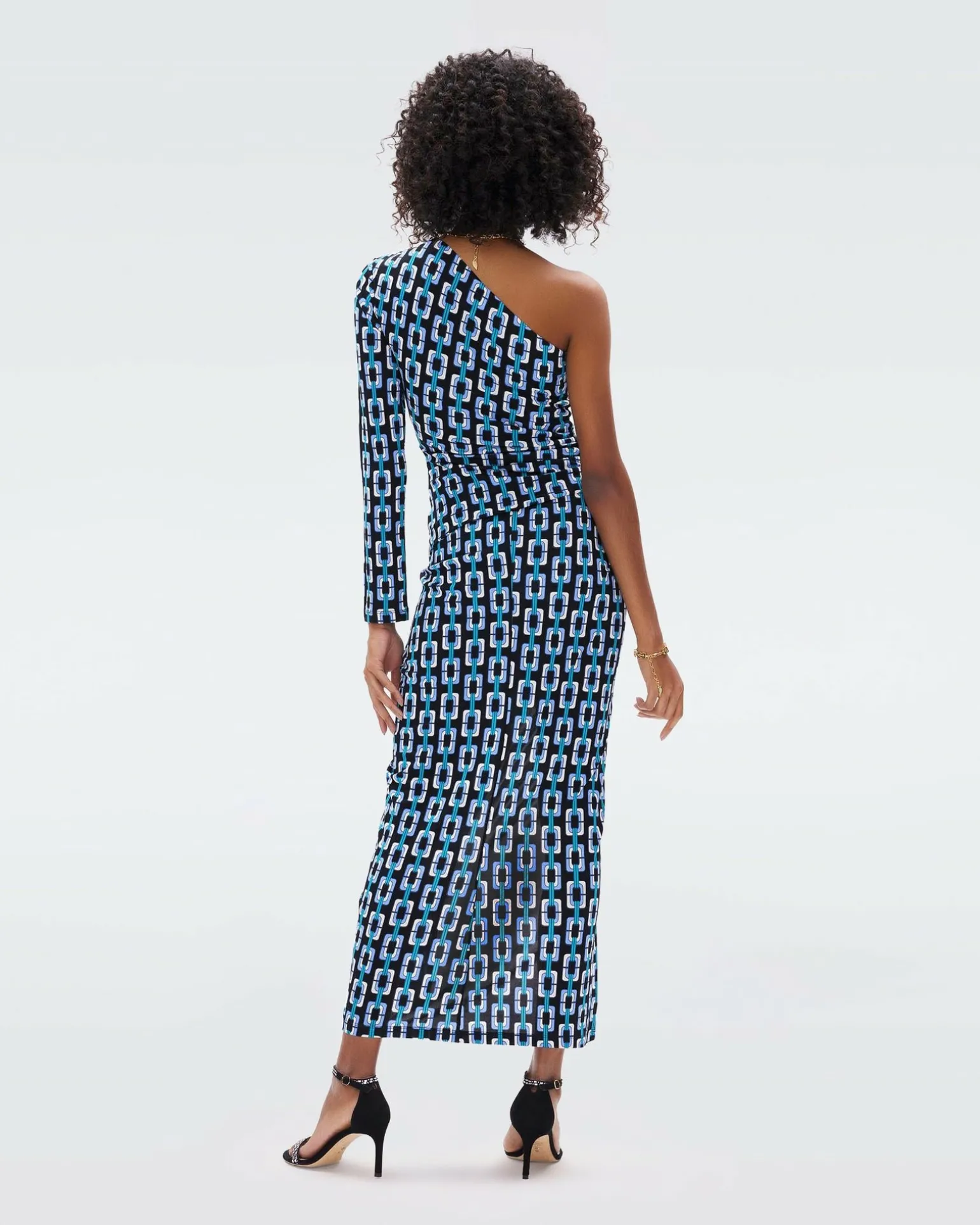 Bold And Sexy, The Kitana Dress Is An Effortless Statement Maker. This One-Shoulder Piece Has A Fitted Silhouette And Ruching At The Waist. Its Long Skirt Closes In A Tulip Fold With A Single High Slit, And Its Matte Jersey Fabric Has A Soft, Smooth Feel.