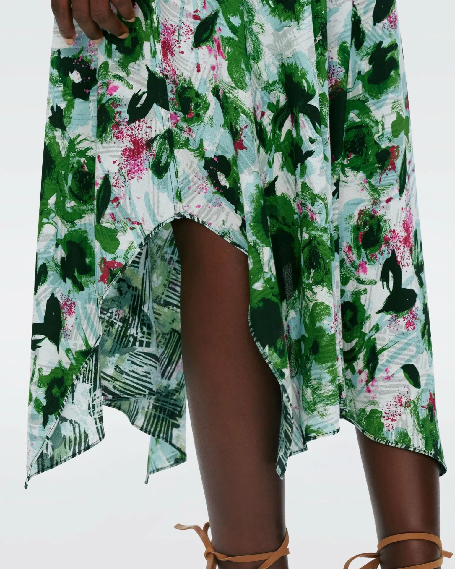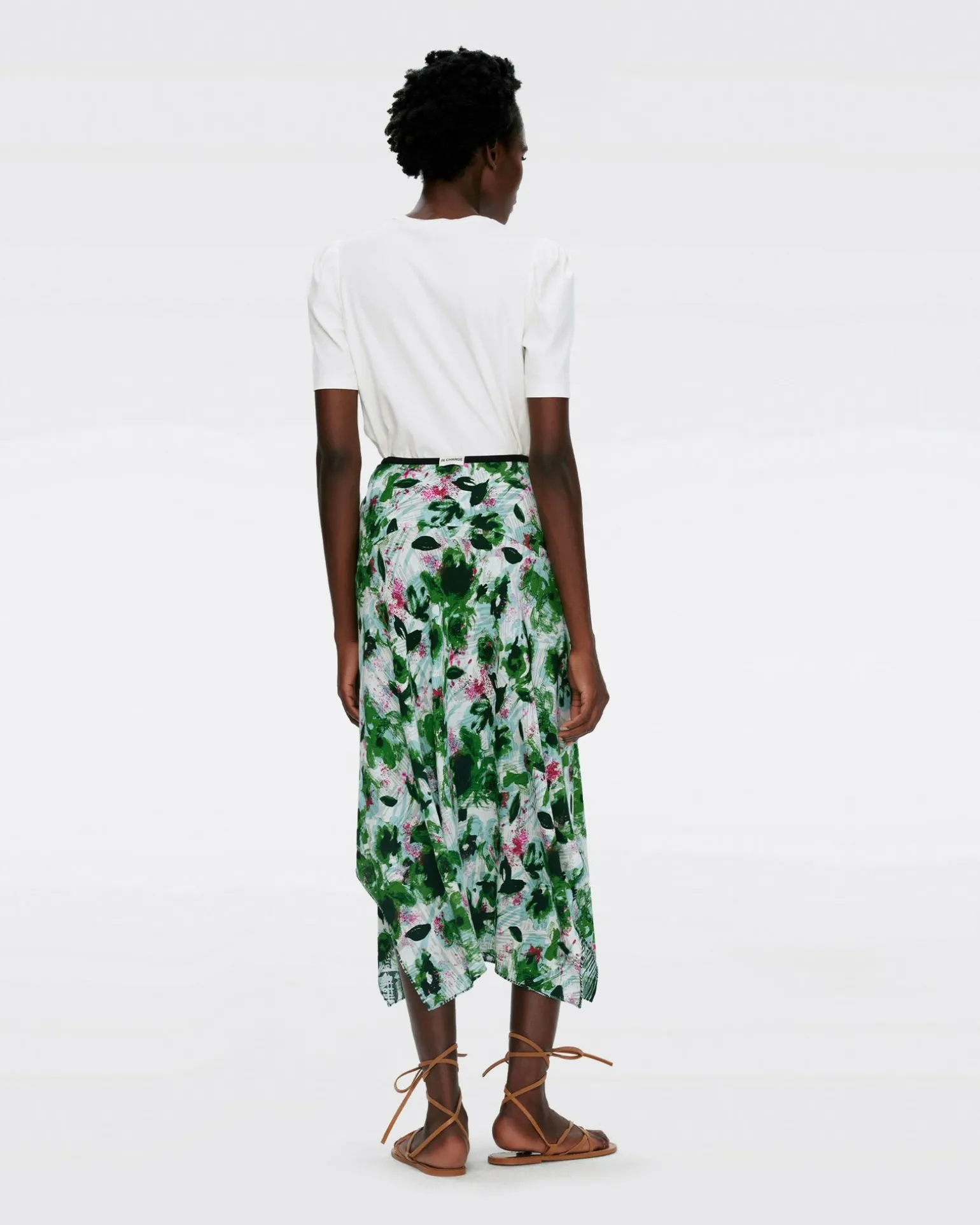 Cut From A Soft And Reversible Crepe, The Maria Skirt Is Cut For A High Waisted Fit. This Piece Has A Contrasting Waistband And An Asymmetrical Hem.