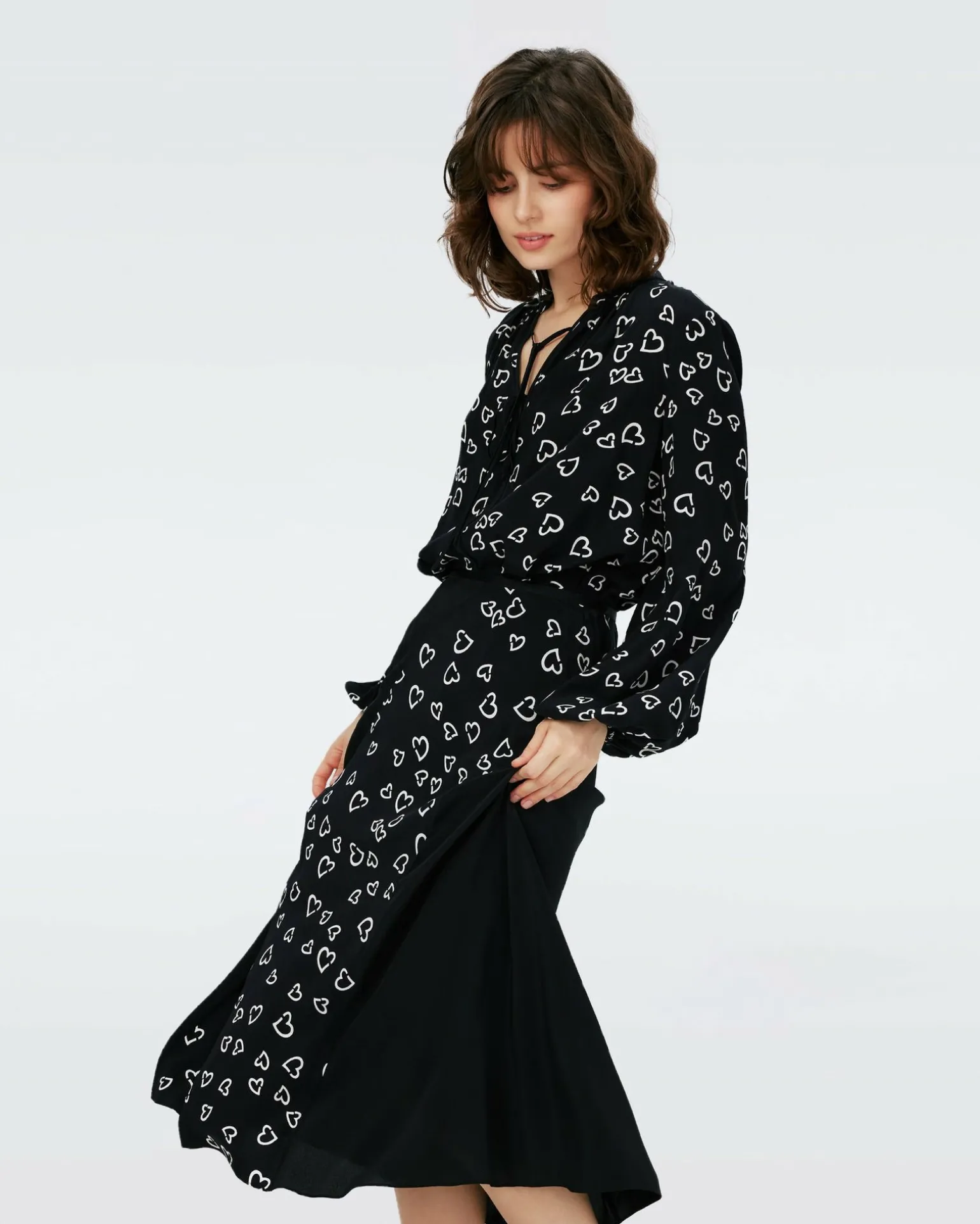 Cut From A Sustainably-Sourced Crepe, The Ravnita Midi Skirt Has A Soft, Light Drape. Combining Solids And Prints With A Diagonal Panel, This Piece Is Cut For A High-Waisted Fit And Falls Around The Mid-Calf. Perfect For Boots And Sandals, It Can Be Worn Year-Round. Pair It With The Ginny Top In The Matching Small Hearts Print For A Complete Look.