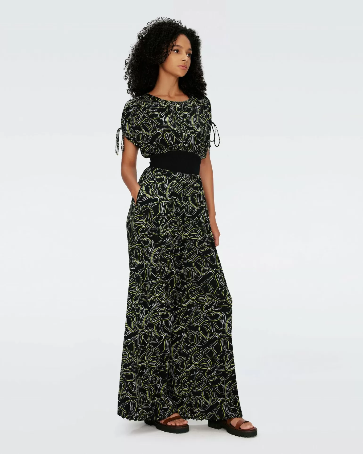 Flowy Yet Fitted, The Andra Jumpsuit Is Cut From A Stretchy And Comfortable Mesh. This Piece Has A High Scoop Neckline, Short Capped Sleeves With Drawstring Detail, And A Flattering, Contrasting Waistband. Loose-Fitting Legs Give This Jumpsuit A Comfortable, Breezy Fit.