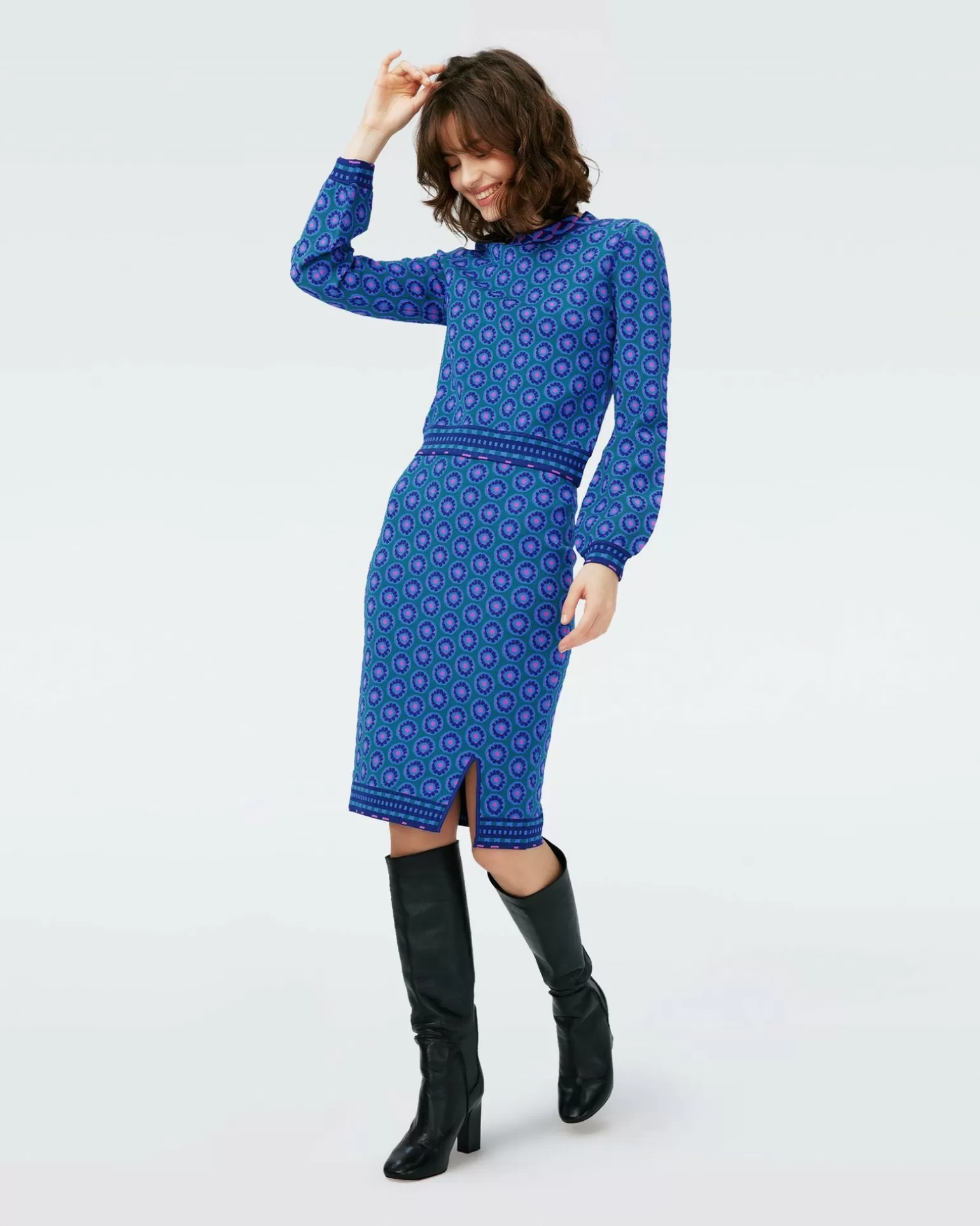 A Simple Shape With Playful Details, The Iggy Sweater Is An Easy Piece To Dress Up Or Down. This Sweater Has Contrasting Detail At The Crewneck Collar, Key-Hole Button Cuffs, And Hem. Made From A Jacquard Knit, It Has A Comfortable Feel And Polished Look. Pair It Perfectly With The Gusta Skirt For A Matching Look.