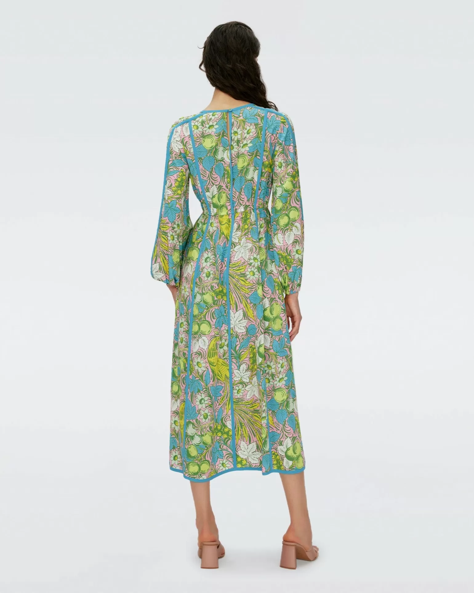 Cut From Our New Sustainably-Sourced Crepe Blend, The Scott Midi Dress Is Back. This Piece Has Slightly Ballooned Sleeves That Cinch At The Cuffs And A Comfortable, Elastic Waist. Its V-Neckline Features Line Details That Outline The Dress, Enhancing Its Billowy Silhouette.