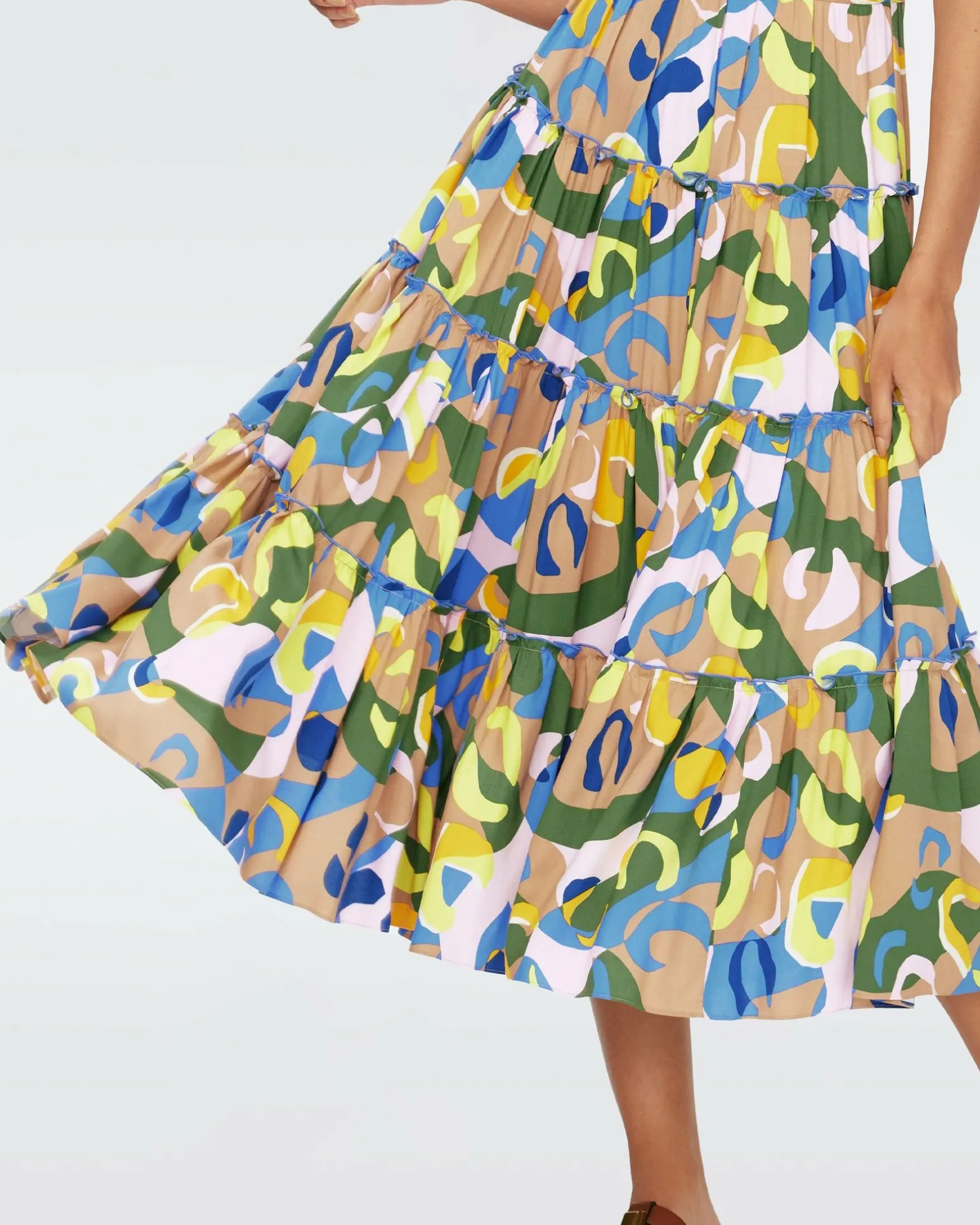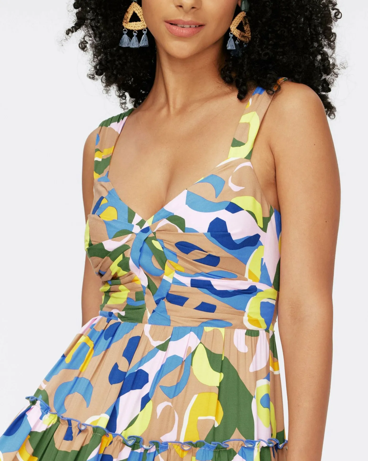 Cut From A Soft Linen Blend, The Achilles Dress Has A Light, Effortless Drape. This Piece Has Thick Spaghetti Straps, A Fitted Waistline, And A Tiered Skirt Featuring Lettuce Trim Detail.