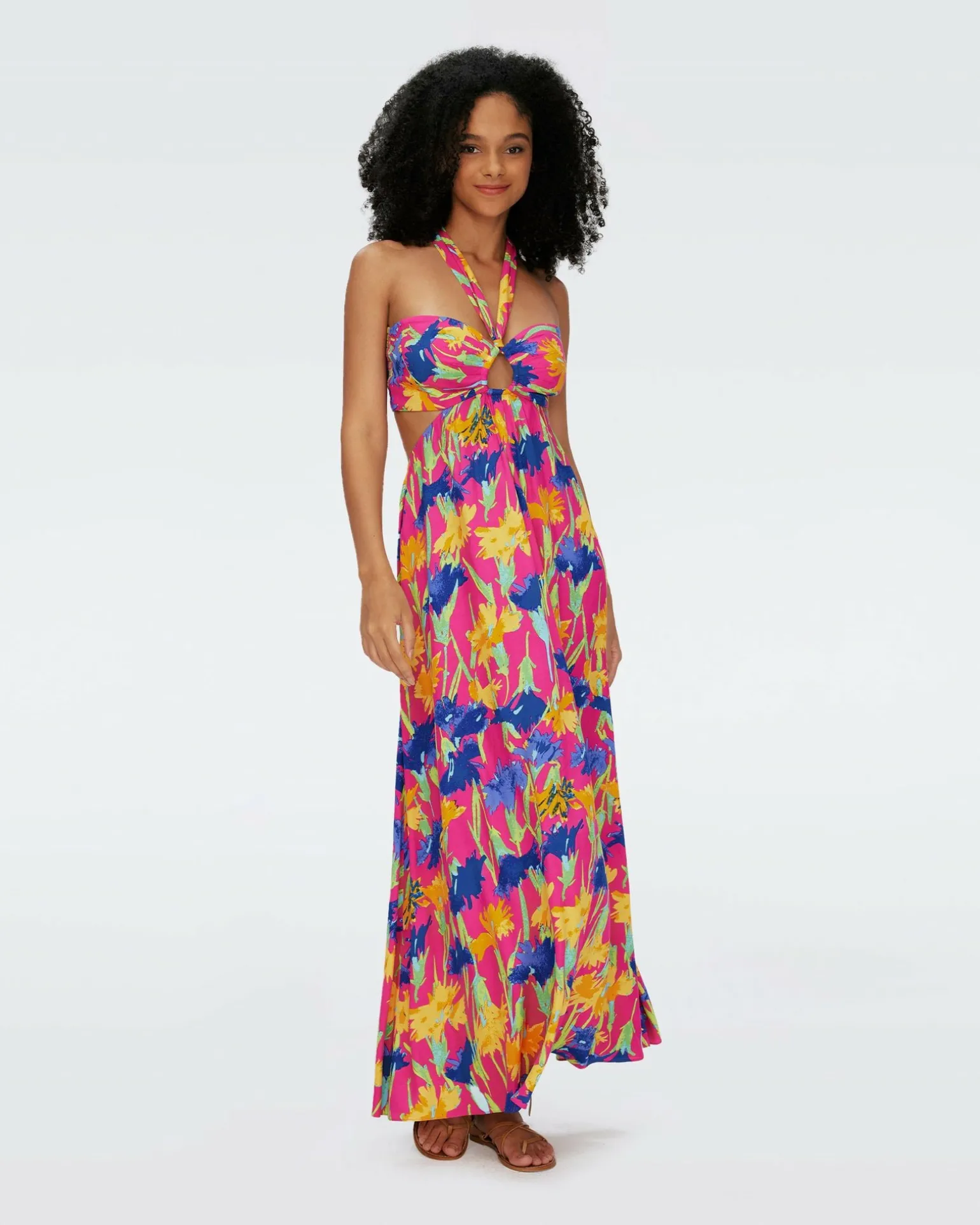 Bold And Bright, The Ainslina Maxi Dress Is Cut From A Sustainably-Sourced Crepe. This Piece Has A Halter Neck, Cut-Out Detail At The Bust And Waist, And A Full, Flowing Skirt.