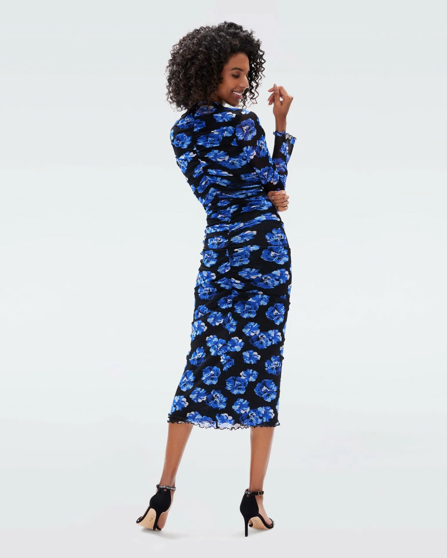 Cut From A Soft Mesh, The Alabama Midi Dress Has A Close Fit And A Comfortable Feel. This Piece Has A Subtle V-Neckline, Slightly Sheer Sleeves, Ruching Throughout, And Lettuce Trim.