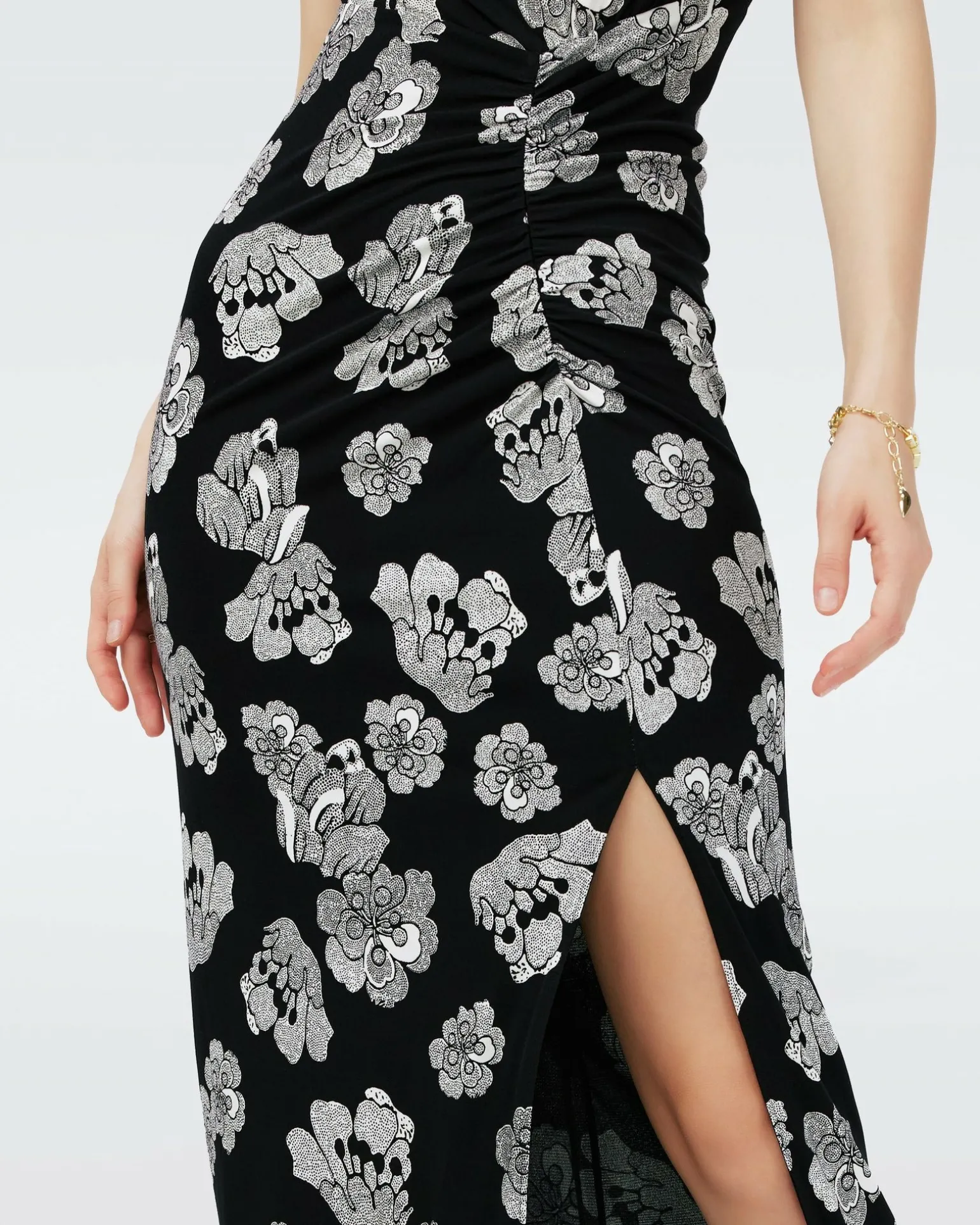 A Go-To Piece For Events And Formal Gatherings, The Apollo Maxi Dress Has Ruching Along The Side, A High Neckline, And A Single Slit That Shows Some Leg. Subtle Shoulder Pads Give This Simple An Elegant Structure And Its Matte Jersey Fabric Gives It A Smooth, Clean Finish.