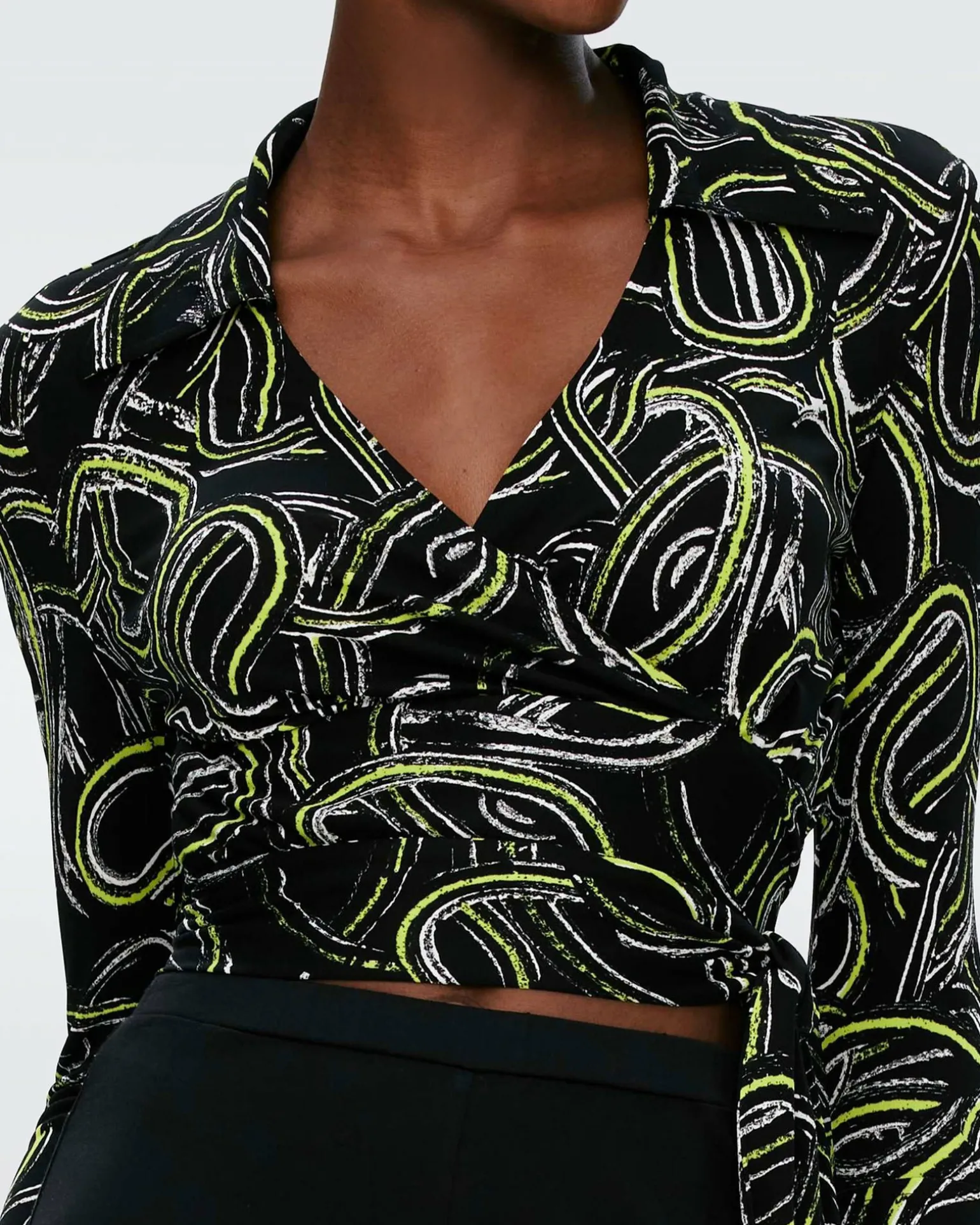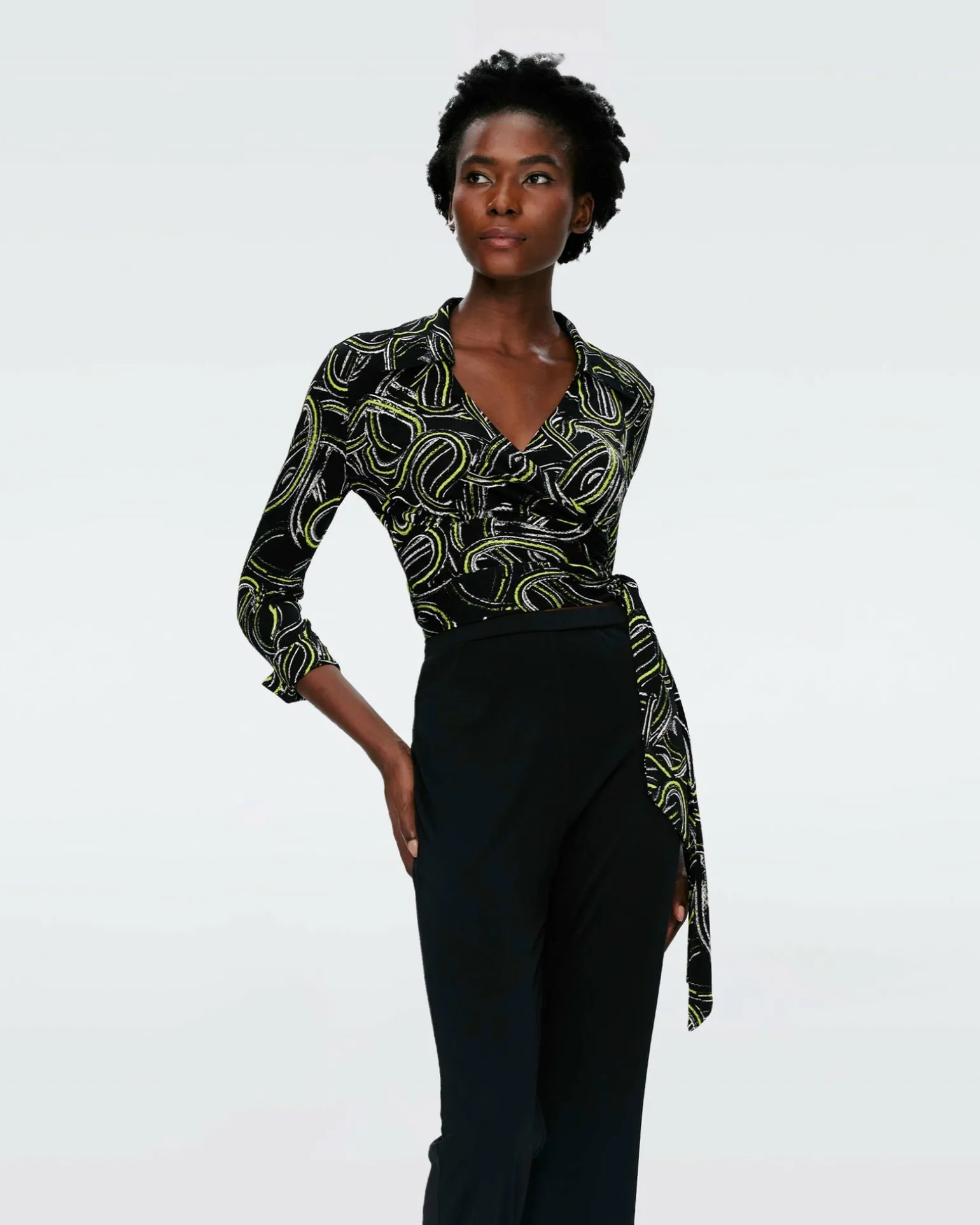 The Bobbie Is One Of Diane’S Original Designs. A Chic Cropped Wrap Top, It Has A Waist-Cinching Belt, Long, Cuffed Sleeves, And A Classic Collar. Cut From A Matte Jersey, It Has A Silky Smooth Feel.