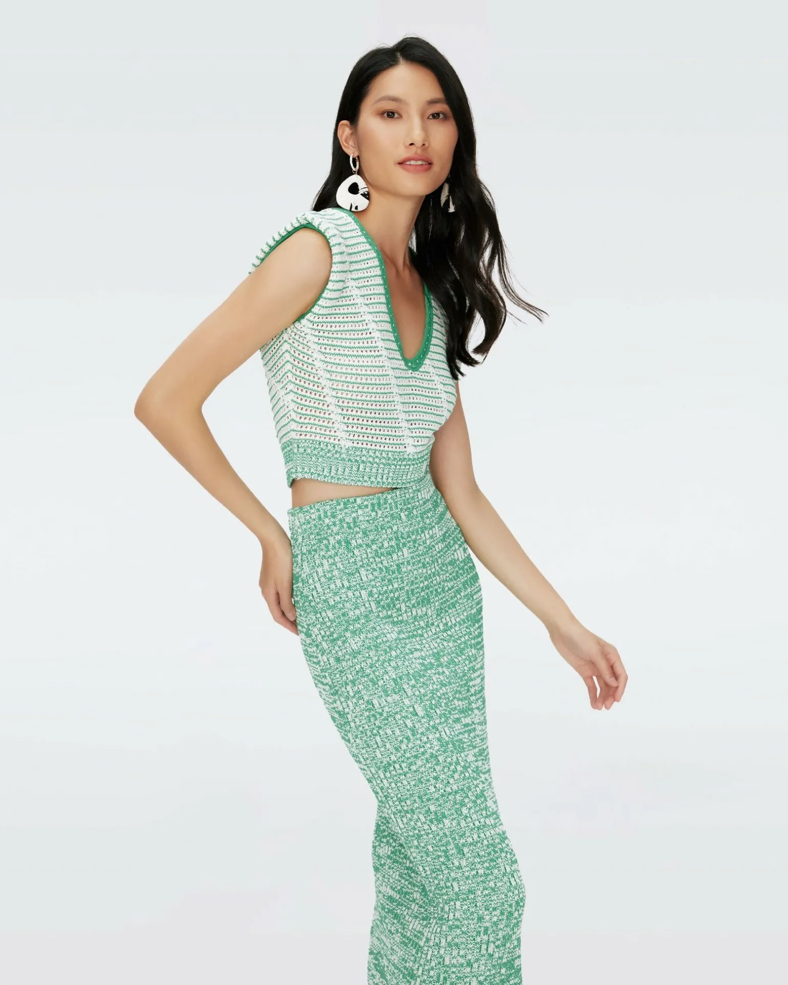 A Cotton Crochet Piece, The Claud Top Is Soft And Textured. This Sleeveless Piece Has A V-Neckline Featuring Solid Trim And A Cropped, Close Fit.
