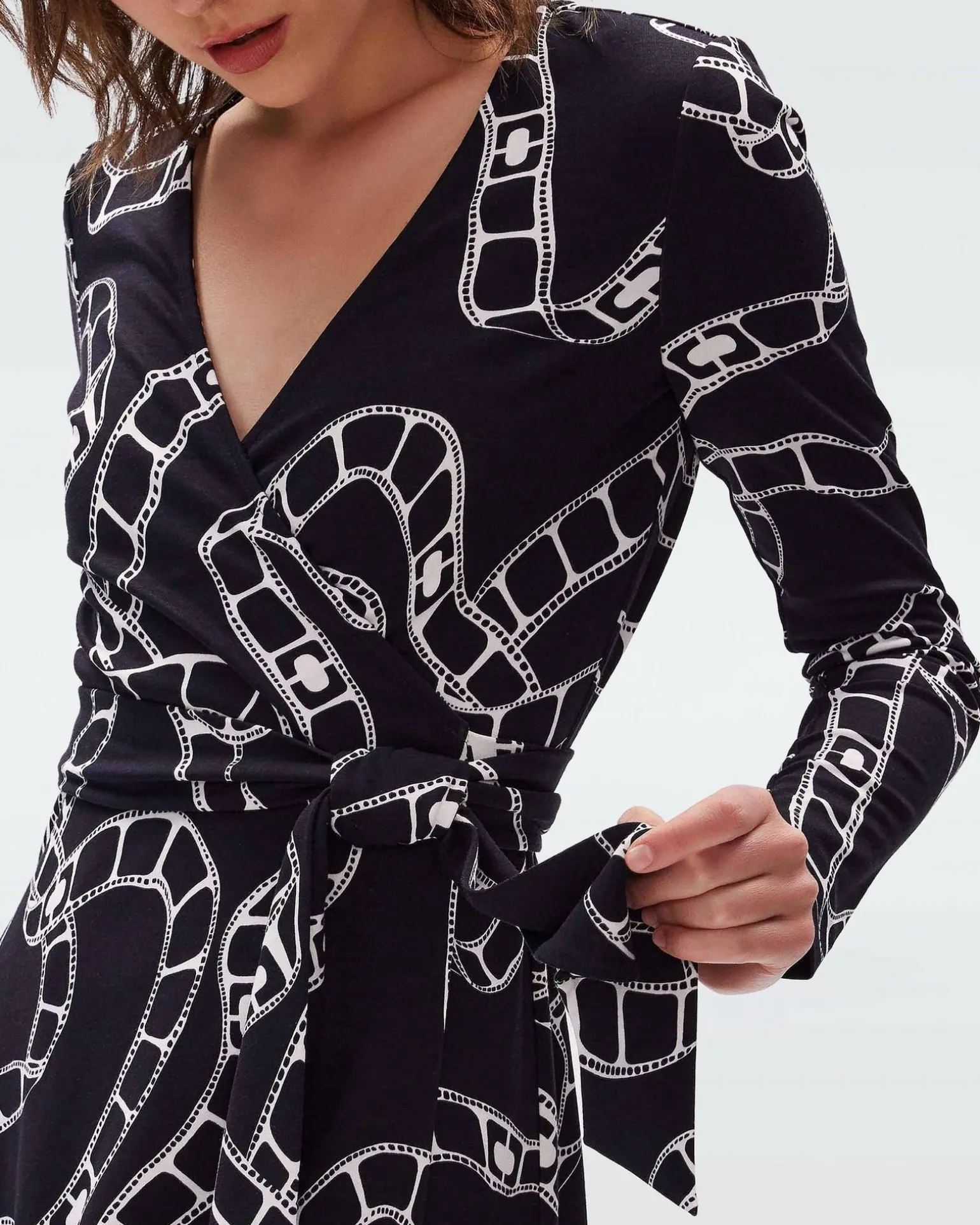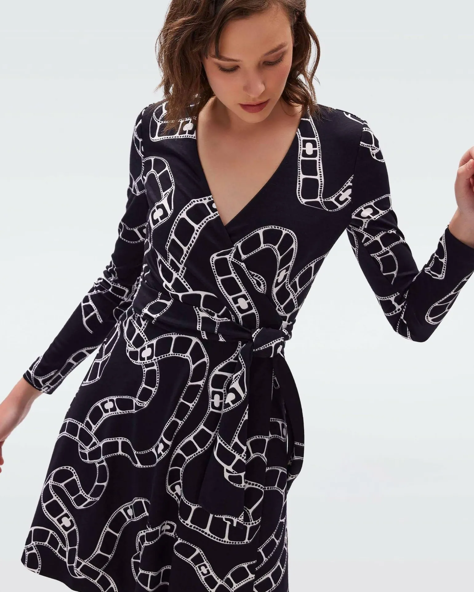 Sleek And Simple, The Demetria Wrap Dress Is Cut From A Weighty Jersey. This Piece Has Long Sleeves, A V-Neckline, And Flattering True Wrap Closure. Its Skirt Falls In An A-Line Shape At A Mini Length.