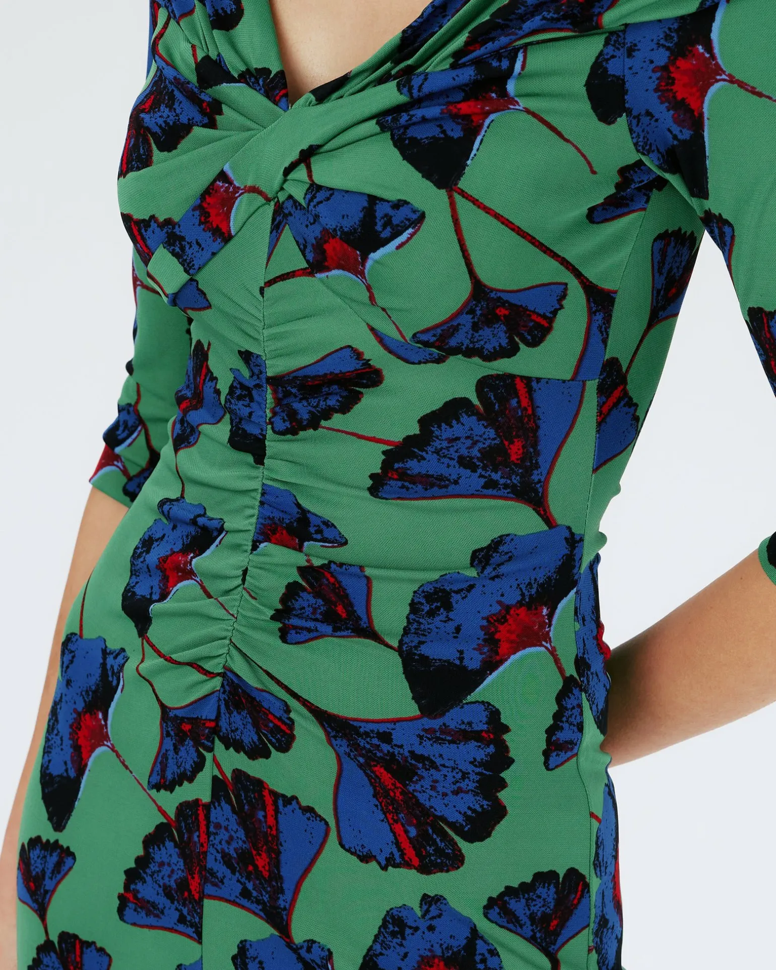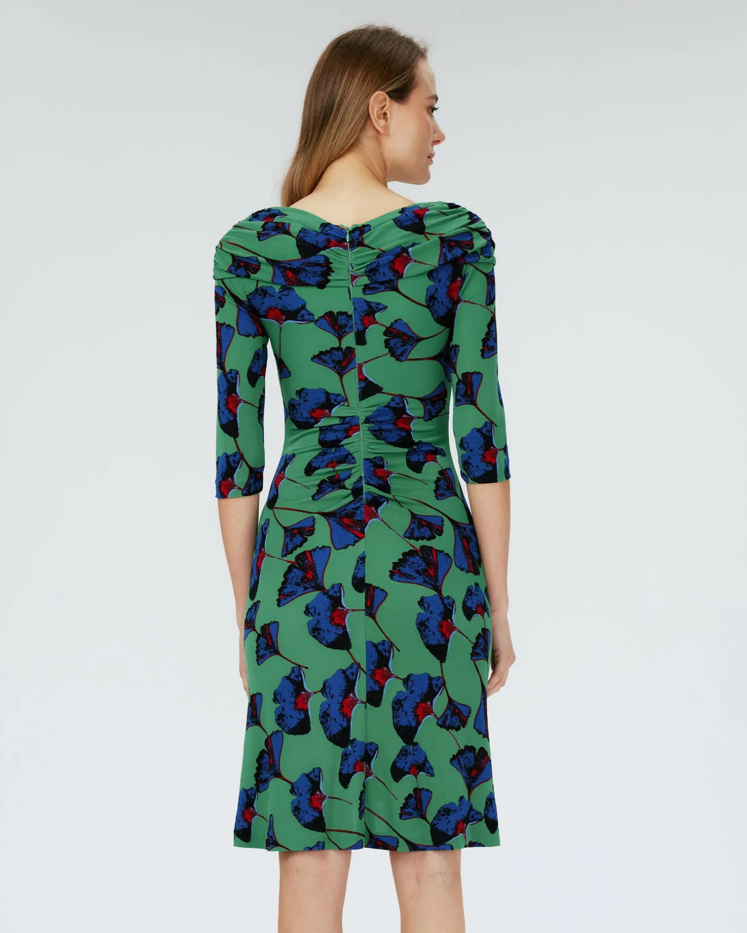 Cut From A Smooth Matte Jersey, The Jim Dress Falls Around The Knee. This Piece Has Three-Quarter Sleeves, Ruching At The Center, And A Hidden Back Zip. With Gathered, Criss-Cross Detail At The Neckline, It Can Be Worn On Or Off The Shoulders.