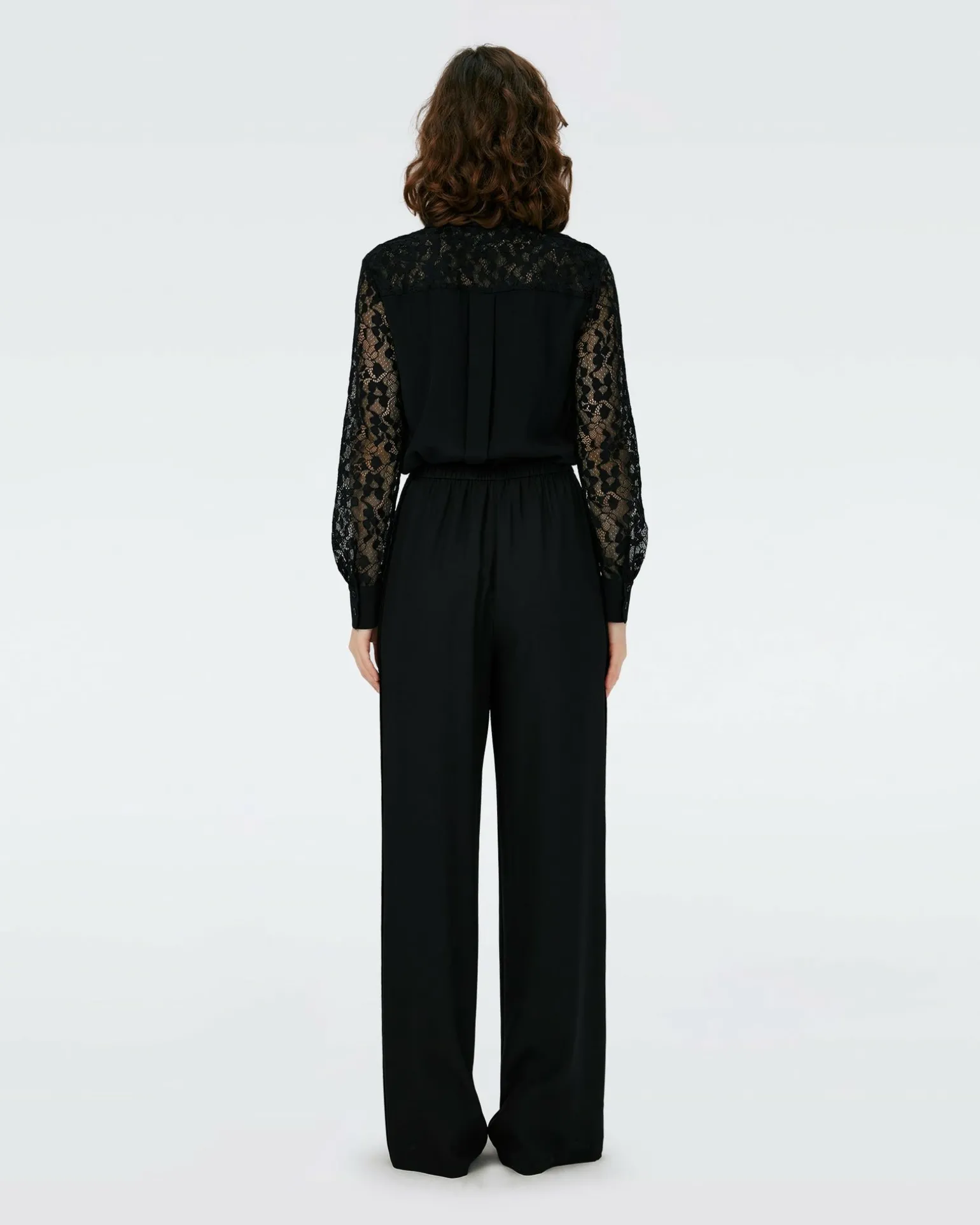 Cut From A Soft Silk Blend, The Louise Top Has A Light And Luxurious Feel. The Top Features Sheer Lace Panels At The Sleeves, Neckline, And Front. A Button-Up With A Classic Collar, This Piece Combines An Everyday Shape With Occasion-Ready Fabrics.