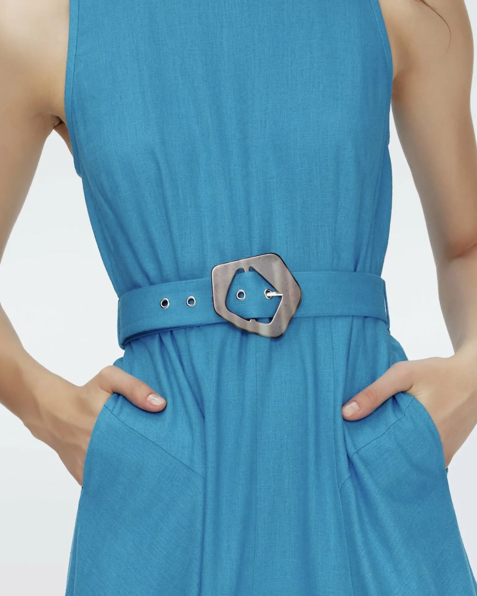 Updated To A Midi Length, The Popular Elliot Dress Returns In Our New Sustainably-Sourced Linen. This Sleeveless Piece Has A High Neck, A Waist-Cinching Belt, And A Full Skirt.