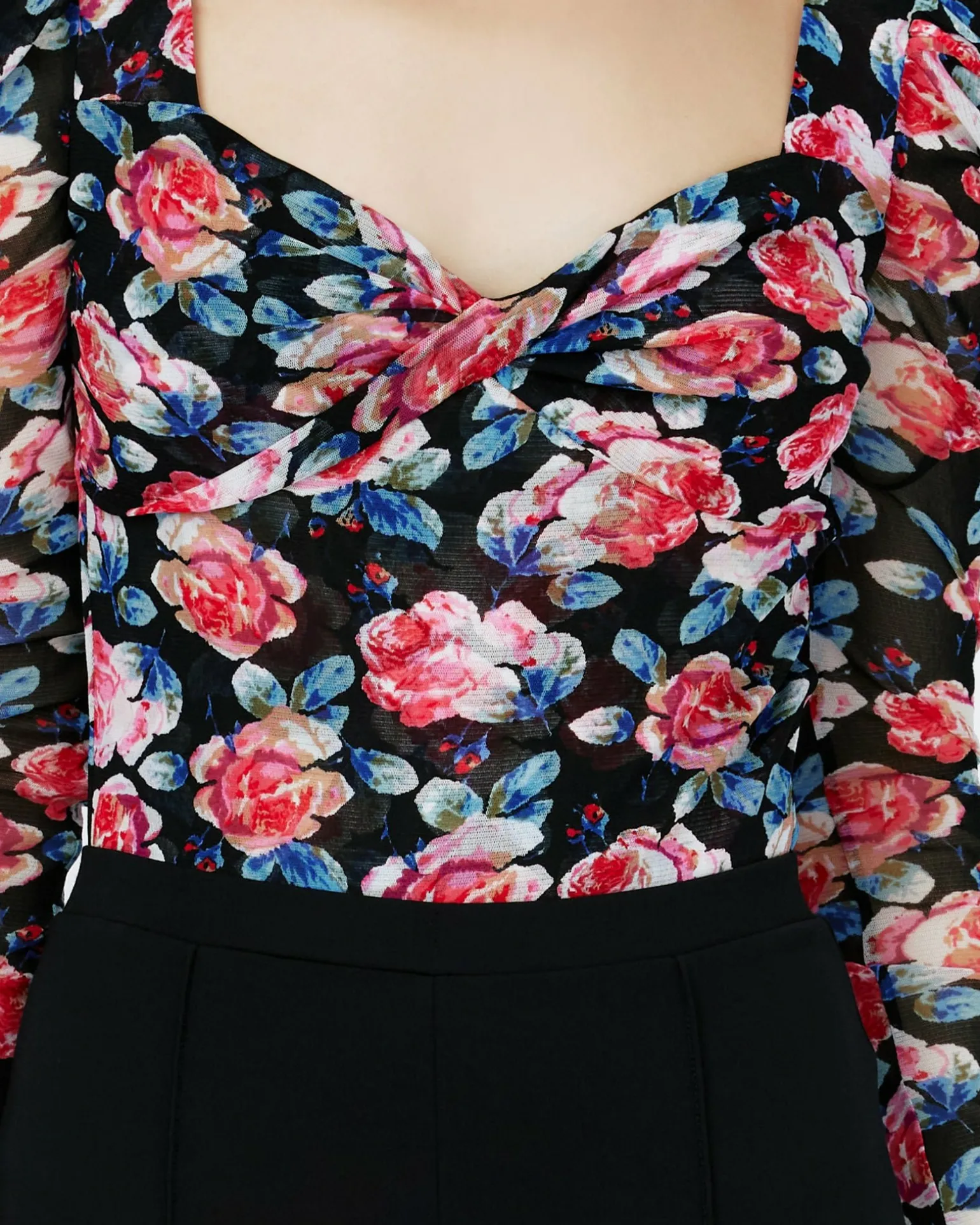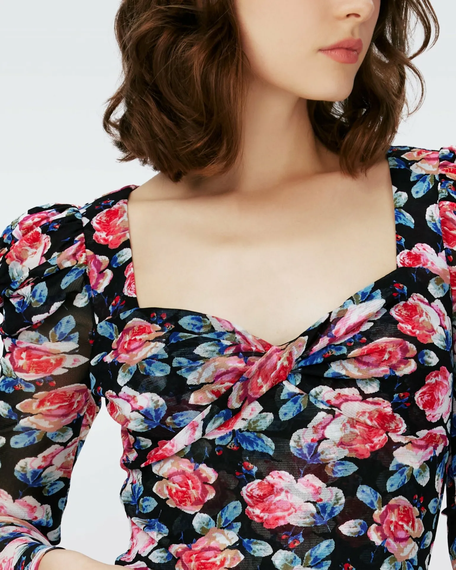 Sweet And Feminine, The Erik Long-Sleeve Bodysuit Is Cut From A Soft And Stretchy Mesh. This Piece Has Puffed, Ruched, Long Sleeves And A Sweetheart Neckline.