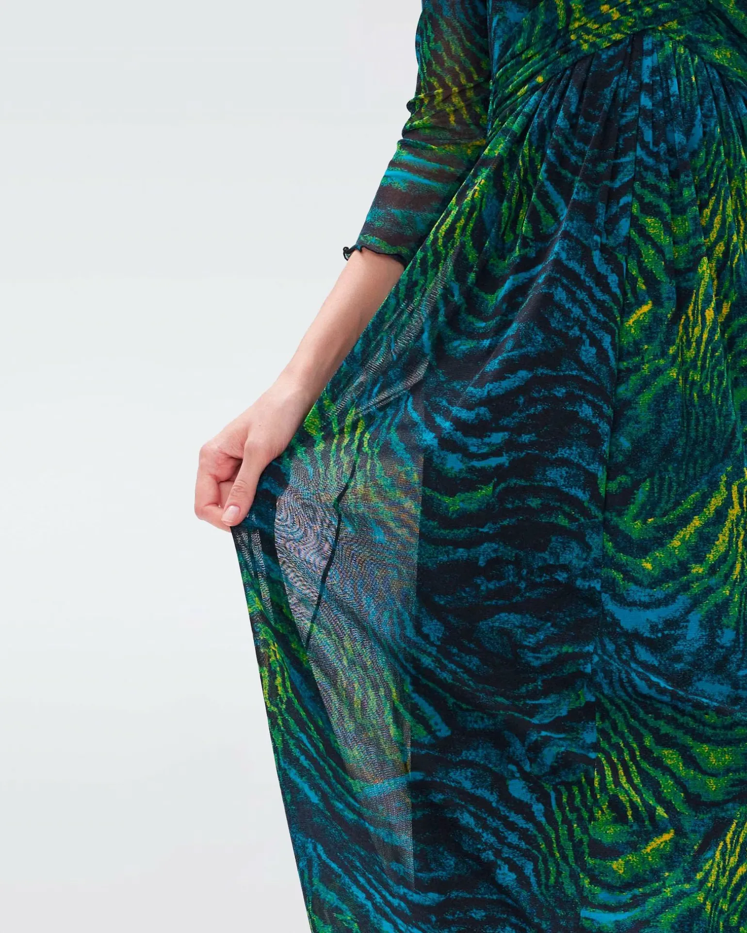 Cut From A Soft And Stretchy Mesh, The Gael Is Everything You Need In An Evening Gown. This Piece Has Long Sleeves, A Sweetheart Neckline, And A Cascading Maxi Skirt That Ends In A Lettuce Hem.