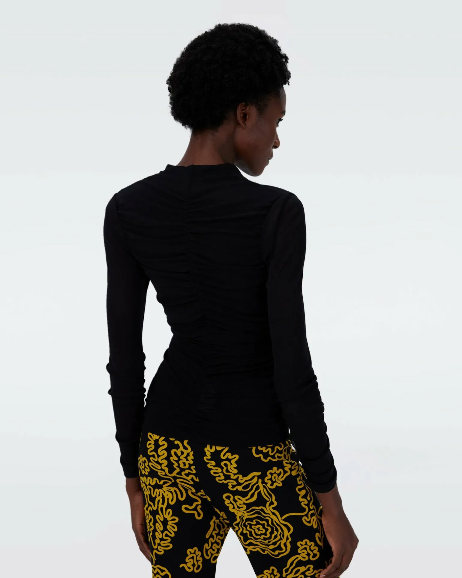 Cut From A Soft Mesh, The Julie Top Is A Solid Staple With Comfortable Stretch. This Piece Has Long Sleeves, A Fitted Silhouette, And Flattering Ruching Throughout. A Front Zipper Allows For A Custom Fit – Choose To Create A High Neck Or A Deep V-Neckline.