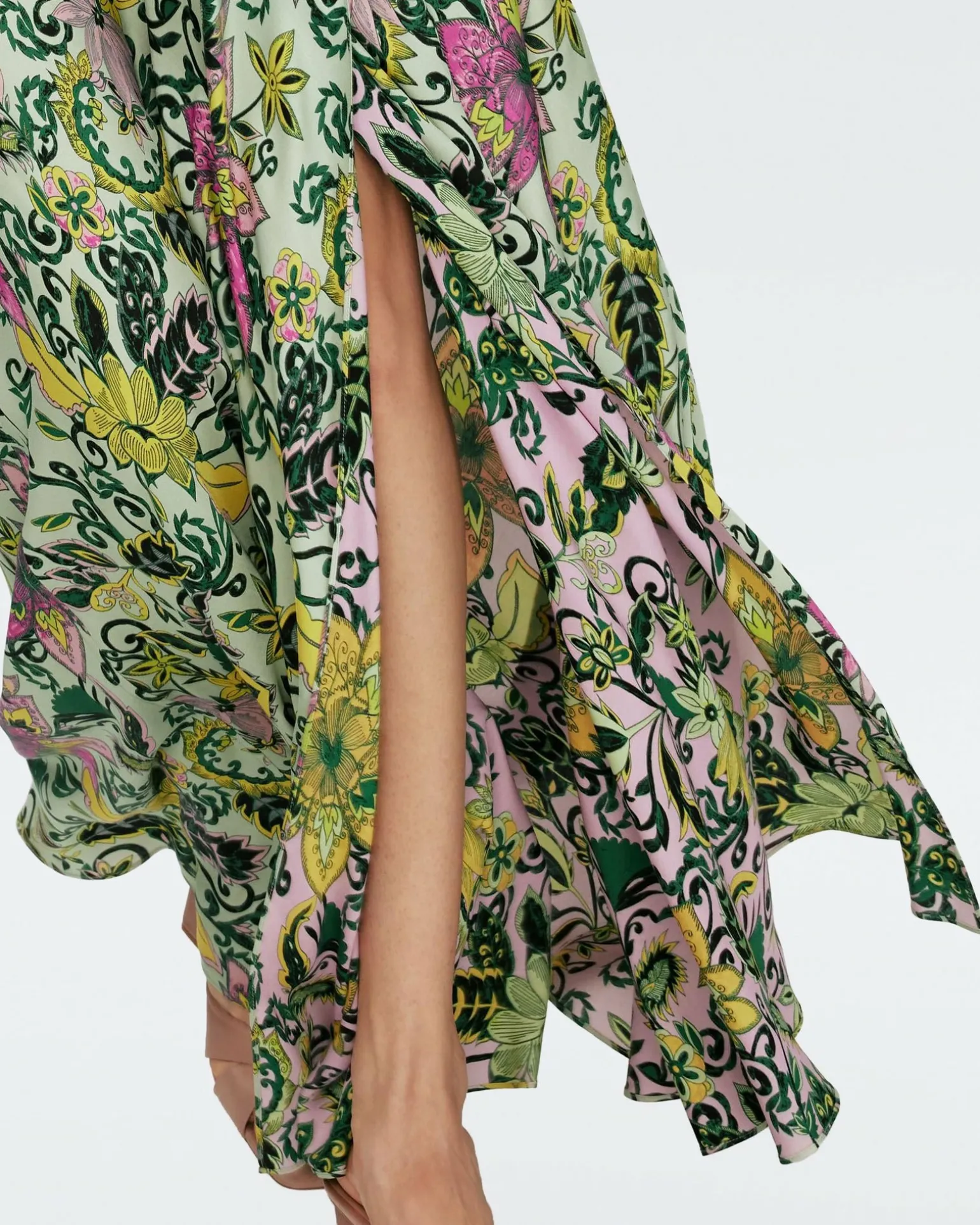 Cut From A Soft Satin, The Krisa Maxi Skirt Has A Silky Feel. This High-Waisted Piece Has A Cinched Waist With A Matching Tie, Falling In A Full, A-Line Shape. Ultra Versatile, This Reversible Piece Features A Different Floral Print On Each Side, And Can Be Dressed Up Or Down.