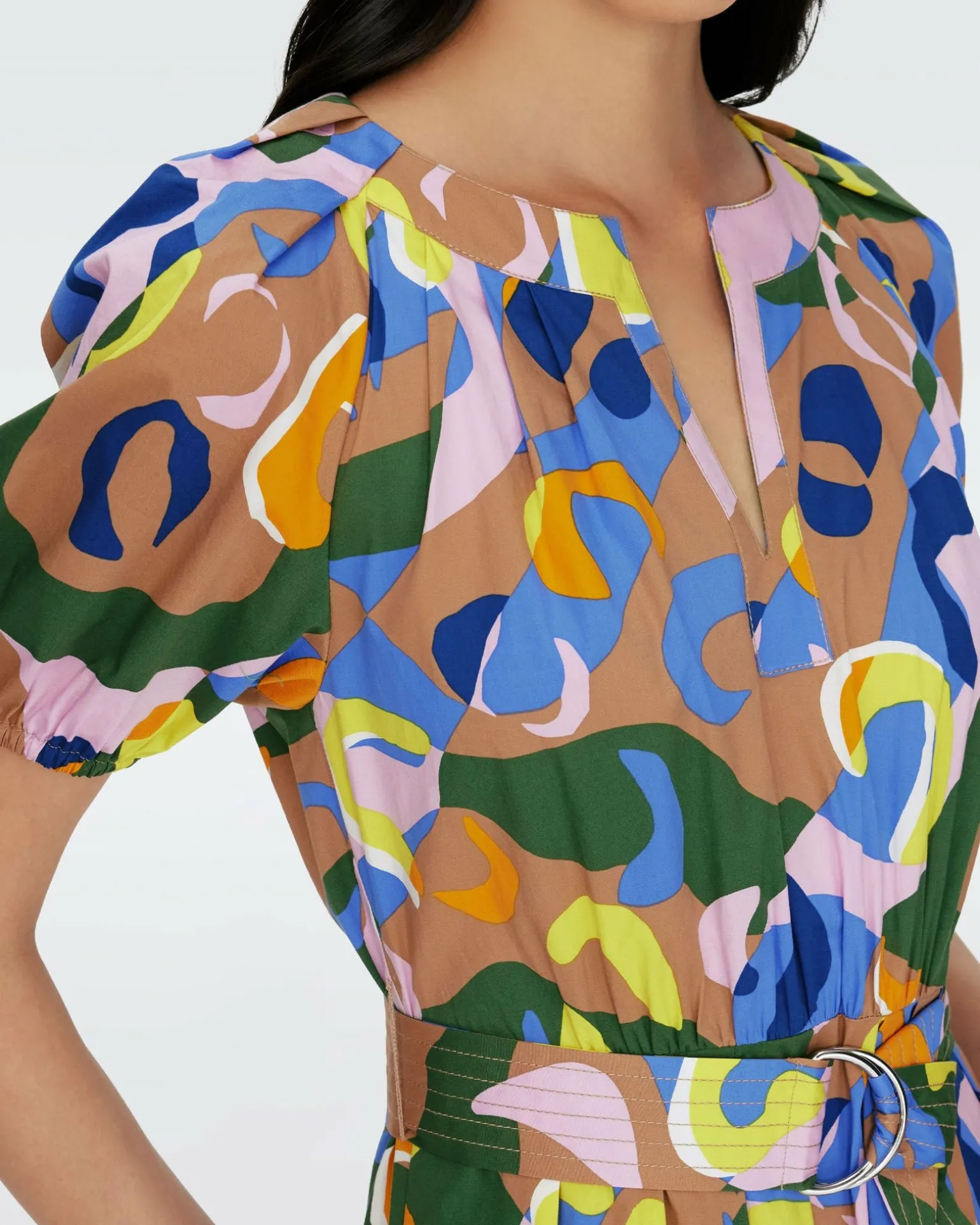Made From A Soft And Stretchy Cotton, The Lindy Midi Dress Has A Light And Effortless Feel. This Piece Has Short, Puffed Sleeves, A V-Neckline, And A Matching, Waist-Defining Belt. Its Tiered, A-Line Skirt Has A Light Yet Structured Feel.