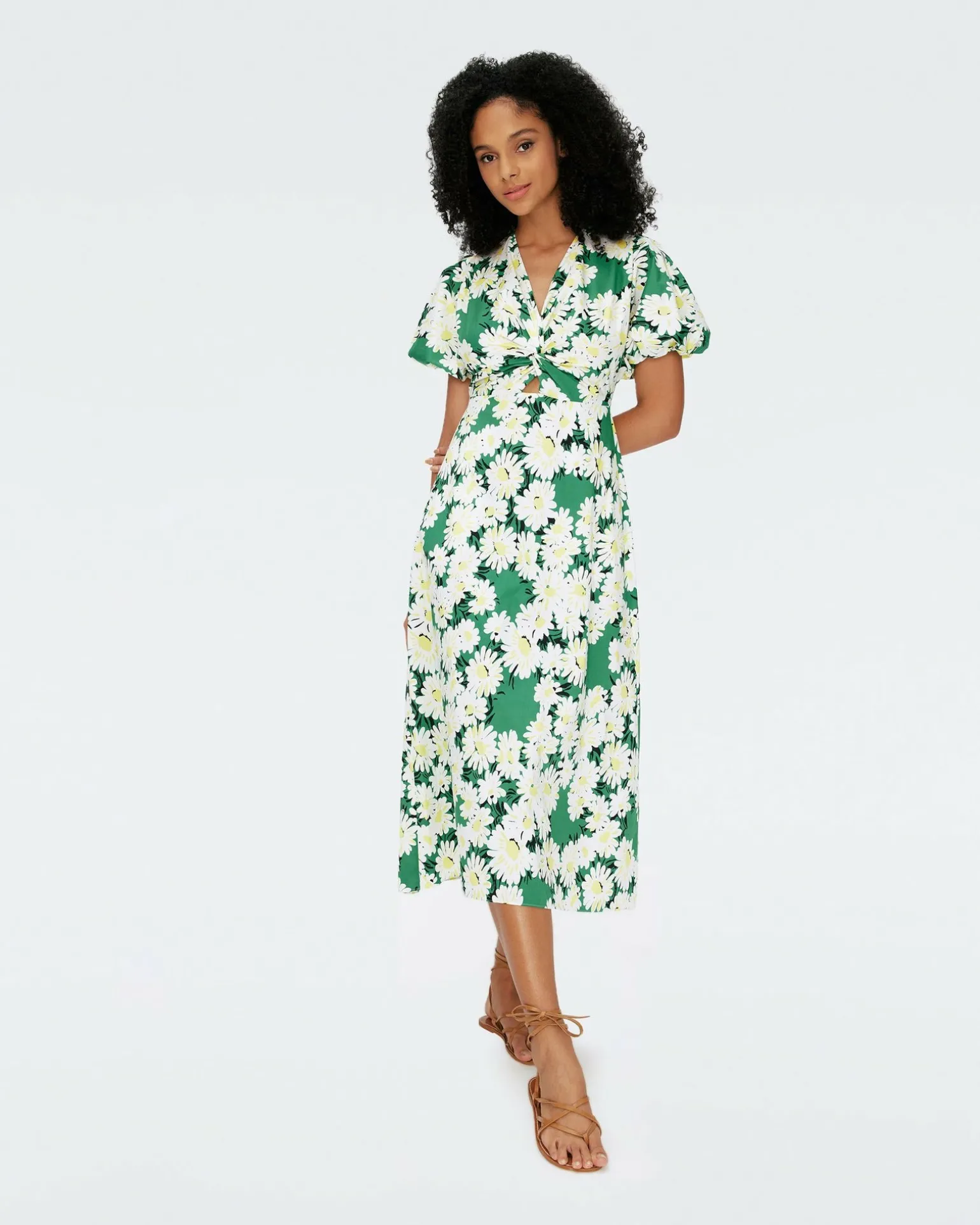 Cut From A Stretchy Cotton, The Majorie Midi Dress Has A Soft, Light Feel. This Piece Has Short, Puffed Sleeves, A V-Neckline, And A Knotted Center Featuring A Small Cut-Out Detail.