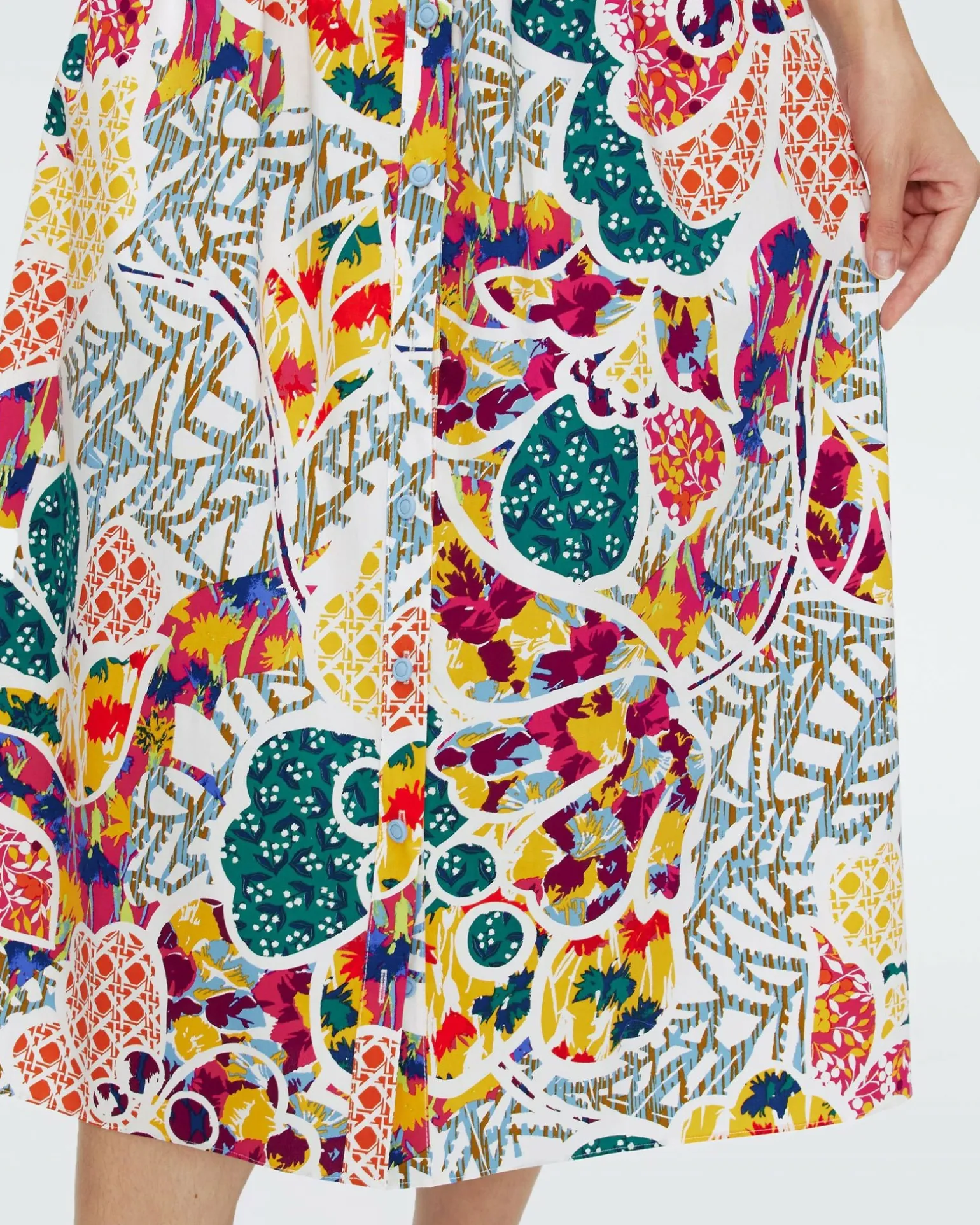 This Dress Designed With A Shirt Collar And Puff Sleeves, Printed With A Colorful Floral Shadow Patchwork, Buttons Detailing Gives It A Sense Of Elegance And Refinement. High Waistline Design With A Belt, Accentuates The Curves Of A Woman’S Slim Waist, The Midi Skirt Length Shows Off Elegance And Modesty. Stretch Cotton Poplin Fabric Has Good Elasticity And Comfort, Make You Feel Light And At Ease While Wearing It.
