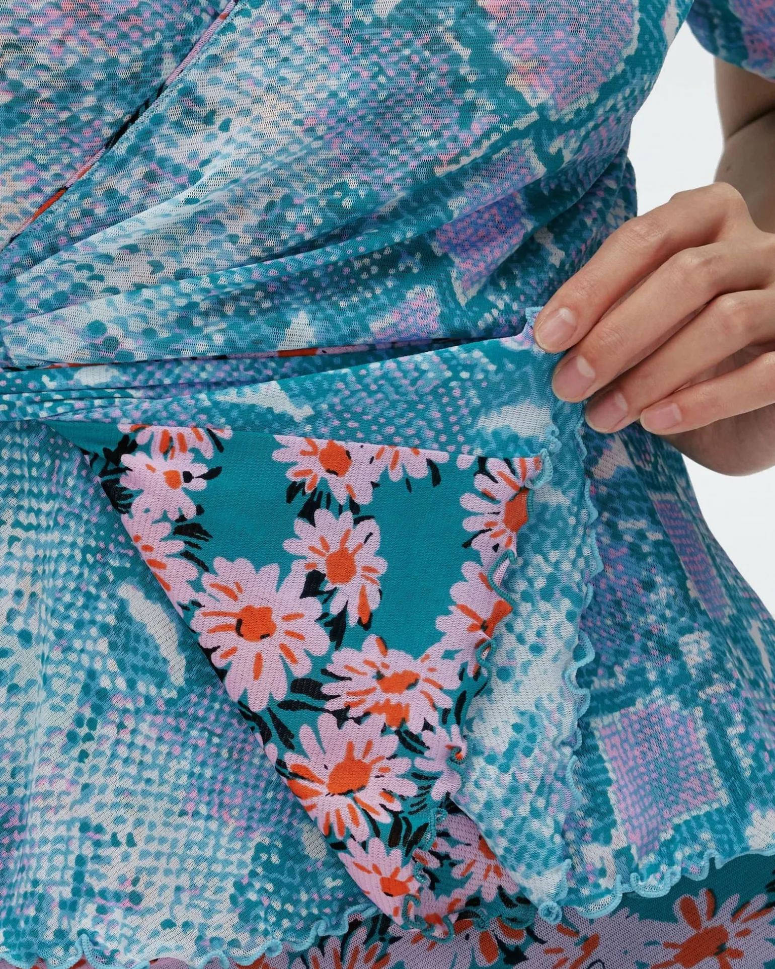 Cut From A Soft And Stretchy Mesh, The Siera Wrap Top Has A Flattering Feel. This Top Has Ruched Half Sleeves, A V-Neckline, And True Wrap Closure With A Matching Tie That Cinches The Waist. A Reversible Piece, It Brings You Two Styles In One, With An Animal Print On One Side And A Floral Print On The Other.