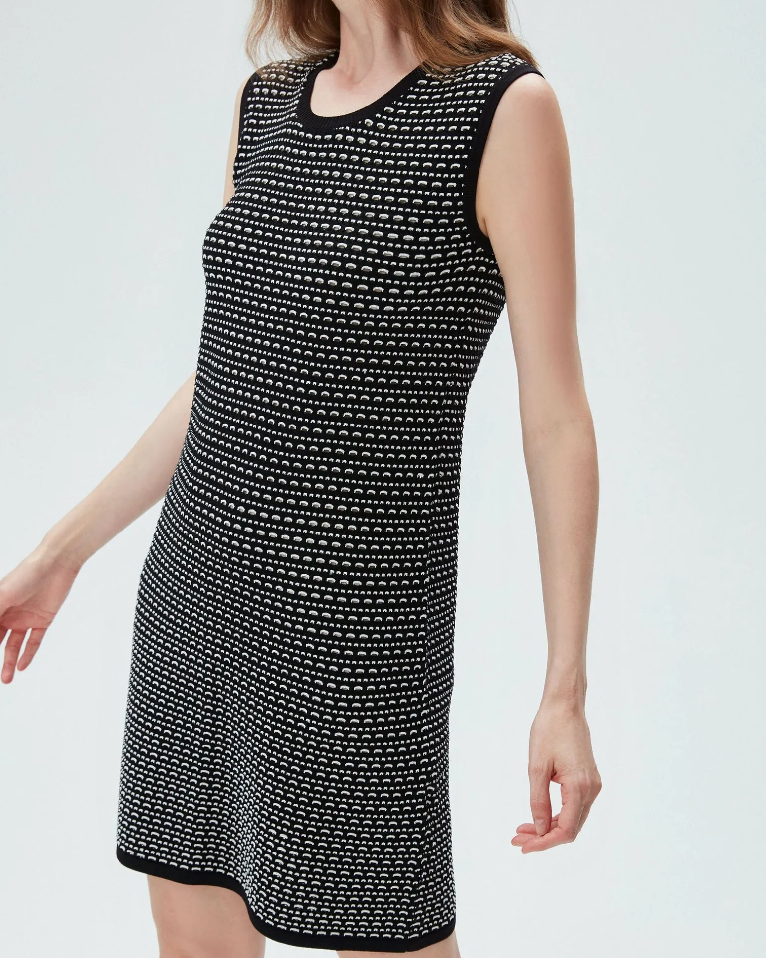 Cut From A Substantial, Soft Jacquard Knit, The Simon Mini Dress Has 60S Flare. This Sleeveless Piece Has A High Scoop Neck, A Slightly Loose-Fitting Silhouette, And Contrasting Trim That Highlights Its Shape.